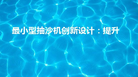 電抽沙機革新設計,提升效率!沙設備關鍵詞解析及市場前景探索